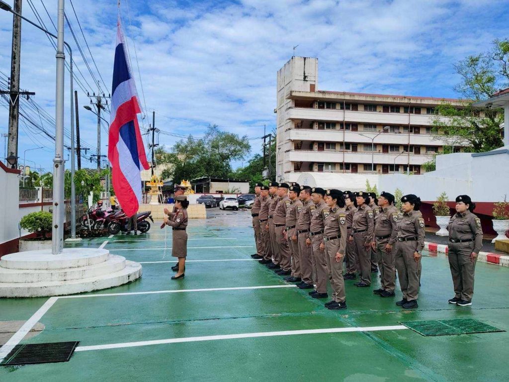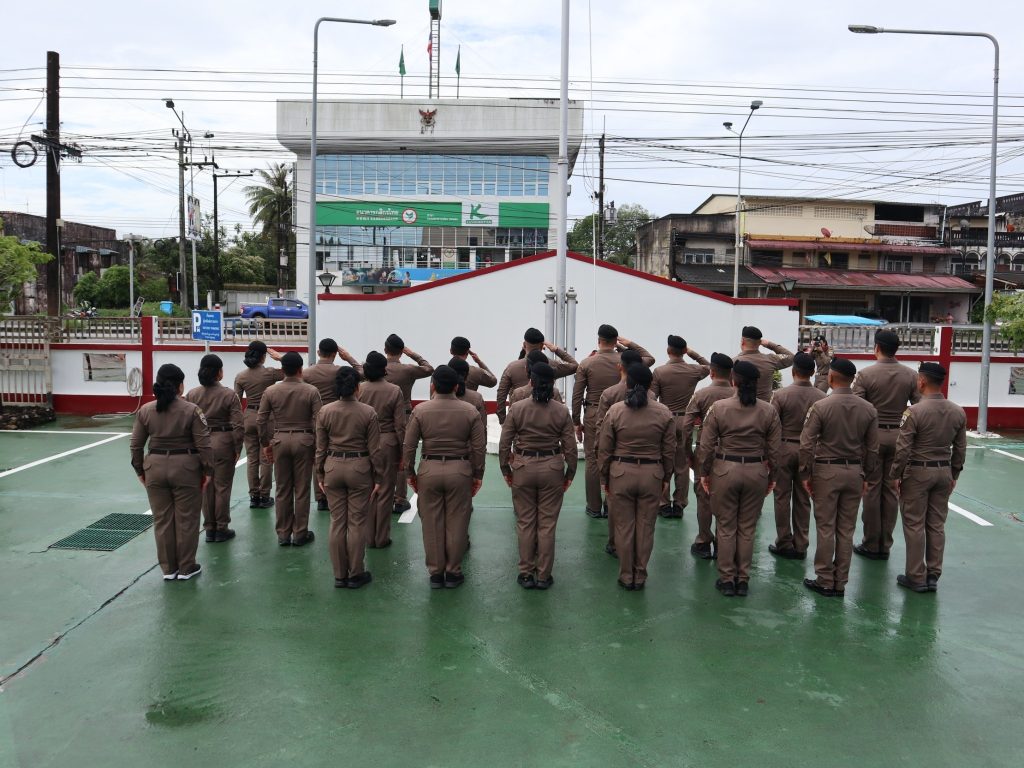 วันจันทร์ที่ 29 ก.ย.68 เวลา 08.00 น. ตม.จว.ระนอง จัดกิจกรรมเนื่องในวันพระราชทานธงชาติไทย 28 กันยายน (Thai National Flag Day) ประจำปี 2568 โดยมี พ.ต.ท.พิษณุ เบี้ยแก้ว รอง ผกก.ตม.จว.ระนอง และ พ.ต.ท.นที คุ้มล้วนล้อม รอง ผกก.ตม.จว.ระนอง พร้อมด้วยข้าราชการตํารวจในสังกัด เข้าร่วมในการทำกิจกรรมดังกล่าว ณ ลานหน้าอาคารที่ทำการ ตม.จว.ระนอง