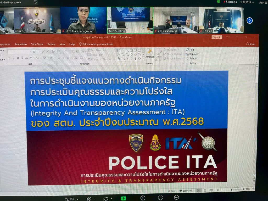 พ.ต.ท.นที คุ้มล้วนล้อม รอง ผกก.ตม.จว.ระนอง เข้าร่วมการประชุมติดตามการดำเนินการ การประเมินคุณธรรมและความโปร่งใสในการดำเนินงานของหน่วยงานภาครัฐ (Integrity and transparency Assessment : ITA) ประจำปี 2568 โดยประชุมผ่านระบบ ZOOM ณ ห้องประชุม ศปก.ตม.จว.ระนอง