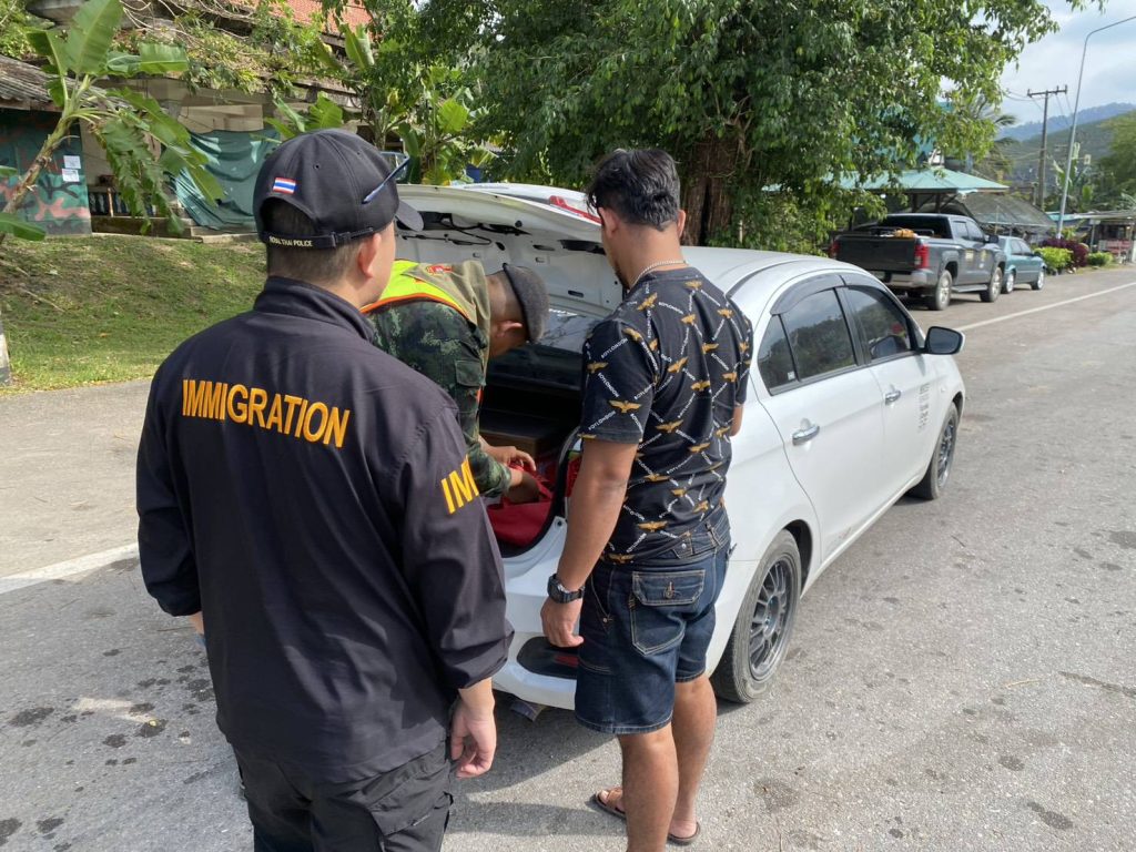 วันที่ 25 พ.ย. 68 เวลา 15.30 น. เจ้าหน้าที่งานสืบสวน ตม.จว.ระนอง บูรณาการร่วมกับเจ้าหน้าที่ ทหาร(จ.ป.ร.) มว.ปล.ที่ 1 ร้อย.ร.2521 ฉก.ร.25 ตั้งจุดตรวจความมั่นคง บริเวณ ด่านตรวจความมั่นคง ศิลาสลัก (จ.ป.ร.) มว.ปล.ที่ 1 ร้อย.ร.2521 ฉก.ร.25 ต. จปร อ.กระบุรี จว.ระนอง เพื่อตรวจสอบบุคคลต่างด้าว ตาม พ.ร.บ.คนเข้าเมือง พ.ศ.2522 และการกระทำผิดกฎหมายอื่นที่เกี่ยวข้อง