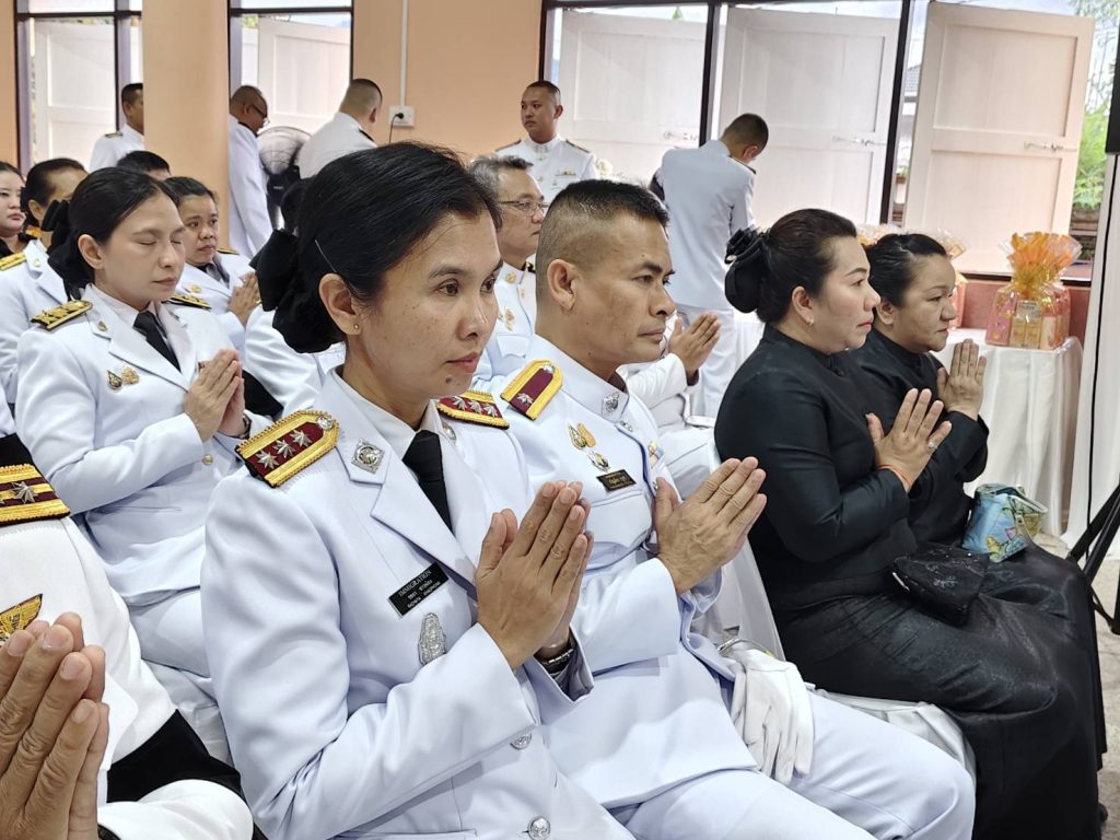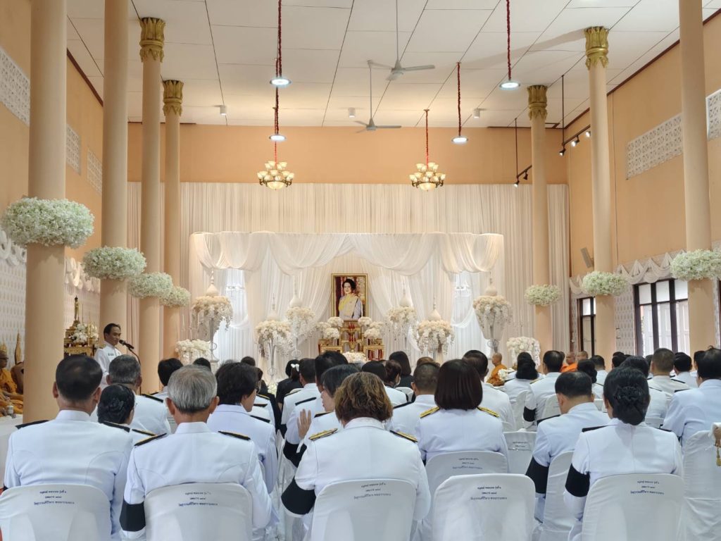 วันนี้ (12 ธ.ค.68) เวลา 17.00 น. พ.ต.อ.เด่นชาย เจริญยุทธ ผกก.ตม.จว.ระนอง มอบหมายให้ ร.ต.อ.หญิง รชยา ขาวผ่อง รอง สว.ตม.จว.ระนอง พร้อมด้วยข้าราชการตำรวจในสังกัด เข้าร่วมพิธีบำเพ็ญกุศล ในวาระครบ 50 วัน (ปัญญาสมวาร) เพื่ออุทิศถวายเป็นพระราชกุศล สมเด็จพระนางเจ้าสิริกิติ์ พระบรมราชินีนาถ พระบรมราชชนนี พันปีหลวง ณ ศาลาการเปรียญ พระวิสุทธิธรรมคณี วัดสุวรรณคีรีวิหาร พระอารามหลวง อ.เมืองระนอง จว.ระนอง