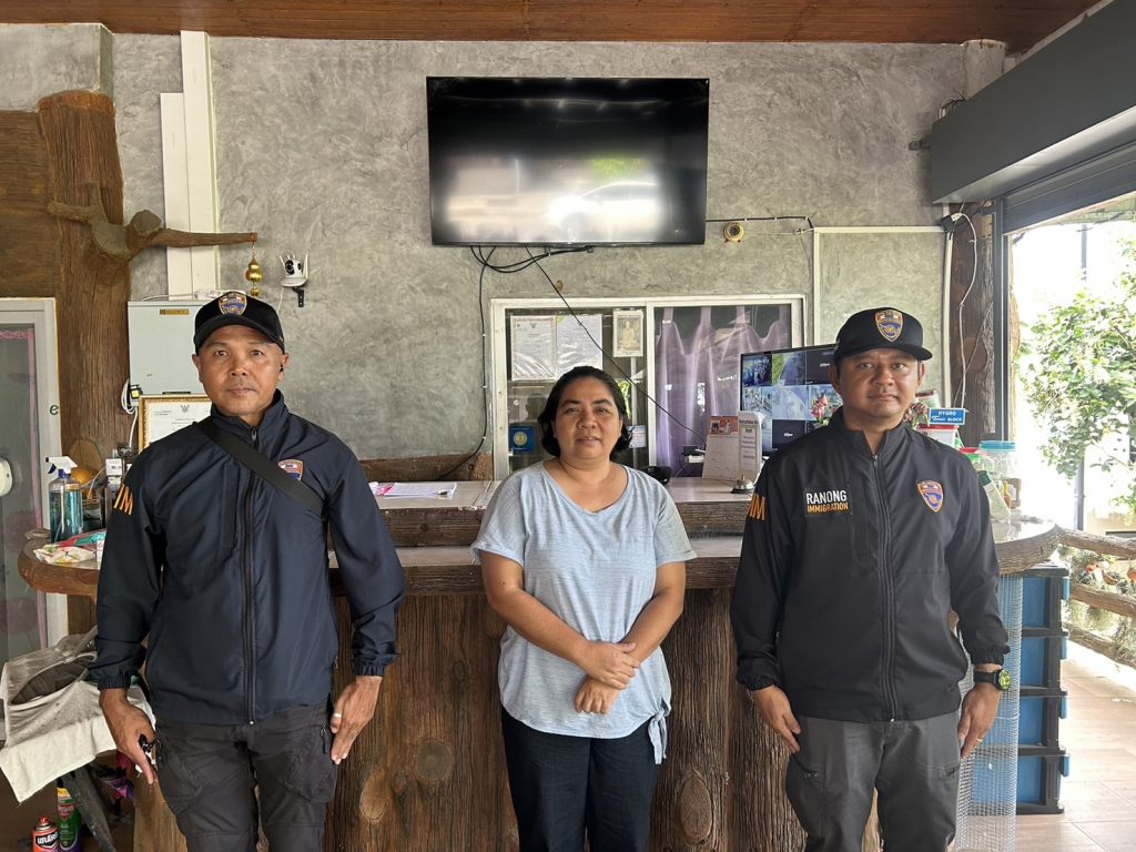 วันที่ 14 ต.ค.68 (เวลา 13.15 น.) ภายใต้การสั่งการ พ.ต.อ.เด่นชาย เจริญยุทธ ผกก.ตม.จว.ระนอง, พ.ต.ท.พิษณุ เบี้ยแก้ว รอง ผกก.ตม.จว.ระนอง, พ.ต.ท.เอกลักษณ์ นุ่นปาน สว.ตม.จว.ระนอง, พ.ต.ต.ณัฐภัทร เรืองศิลป์ประเสริฐ สว.(สอบสวน) กก.สส.บก.ตม.6