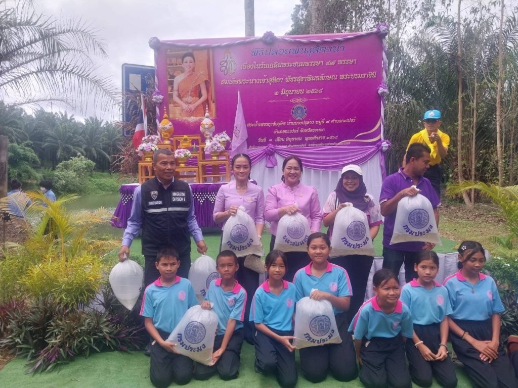วันนี้ (3 มิ.ย. 68) เวลา 10.00 น. พ.ต.อ.เด่นชาย เจริญยุทธ ผกก.ตม.จว.ระนอง มอบหมายให้ พ.ต.ท.หญิง วรรณภา พิพัฒนสุคนธ์ สว.ตม.จว.ระนอง นำข้าราชการตำรวจในสังกัดเข้าร่วมพิธีปล่อยพันธุ์สัตว์น้ำ เนื่องในโอกาสวันเฉลิมพระชนมพรรษาสมเด็จพระนางเจ้าฯ พระบรมราชินี ณ สระน้ำเพชรฤาชัยอุทิศ บ้านบางปรุล่าง หมู่ที่ 7 ต.กะเปอร์ จว.ระนอง โดยมี นายสุพจน์ ภูติเกียรติขจร ผู้ว่าราชการจังหวัดระนอง เป็นประธาน