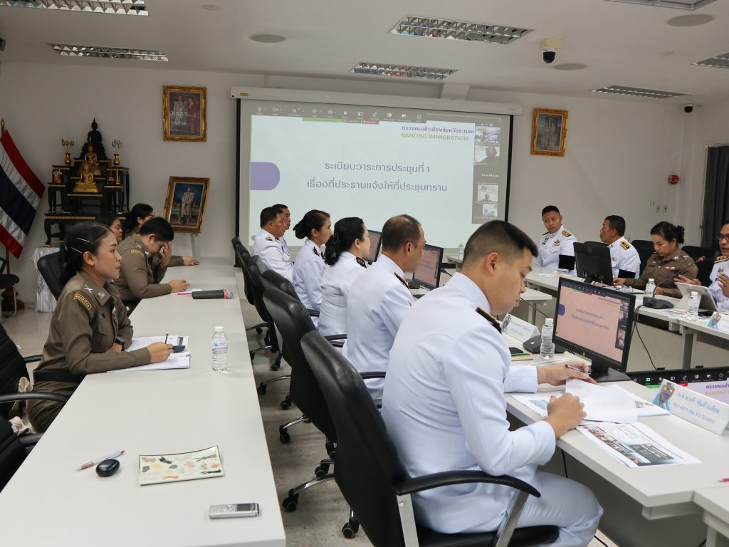 วันนี้ (6 พ.ย.68) เวลา 13.00 น. พ.ต.อ.เด่นชาย เจริญยุทธ ผกก.ตม.จว.ระนอง ได้ประชุมข้าราชการตำรวจ ในสังกัด เพื่อรับทราบผลการปฏิบัติงาน ปัญหาอุปสรรคและมอบนโยบายการปฏิบัติหน้าที่ราชการ และกำชับ การปฏิบัติราชการให้เป็นไปตามนโยบายของ ตร., สตม. และ บก.ตม.6 ณ ห้องประชุม ศปก.ตม.จว.ระนอง