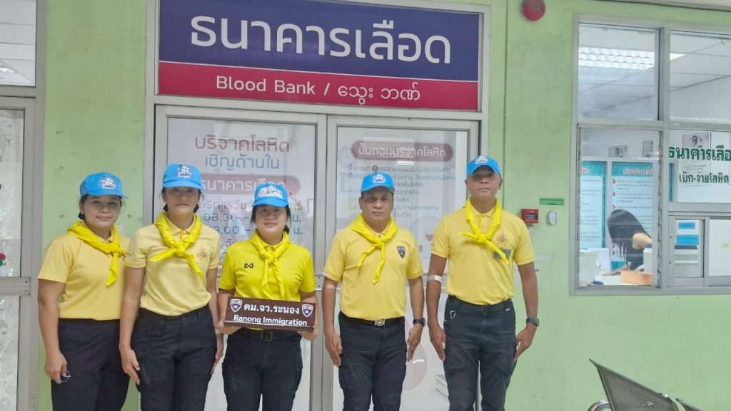 วันนี้ (7 พ.ค.68) เวลา 15.00 น. ภายใต้การอำนวยการของ พล.ต.ต.ทรงโปรด สิริสุขะ ผบก.ตม.6, พ.ต.อ.ไพรัช พุกเจริญ รอง ผบก.ตม.6 โดย พ.ต.อ. เด่นชาย เจริญยุทธ ผกก.ตม.จว.ระนอง และ พ.ต.ท. นที คุ้มล้วนล้อม รอง ผกก.ตม.จว.ระนอง มอบหมายให้ ว่าที่ พ.ต.ท.หญิง วรรณภา พิพัฒนสุคนธ์ สว.ตม.จว.ระนอง นำข้าราชการตำรวจ ในสังกัด ตม.จว.ระนอง ปฏิบัติกิจกรรมจิตอาสาบริจาคโลหิต เนื่องในโอกาสมหามงคล เฉลิมพระชนมพรรษา 6 รอบ 28 ก.ค.67 ณ โรงพยาบาลระนอง ต.เขานิเวศน์ อ.เมือง จว.ระนอง