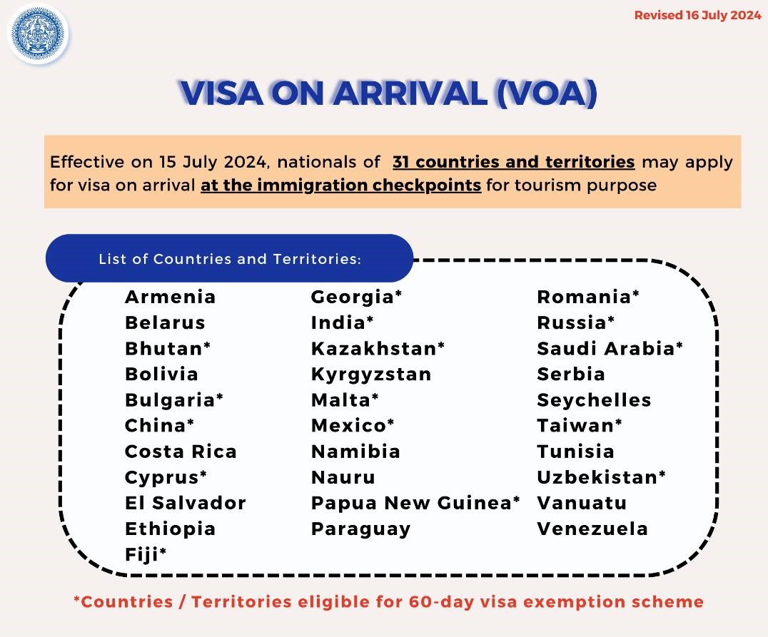 ประกาศกระทรวงมหาดไทยมาตรการการตรวจลงตราระยะสั้น 4 ฉบับ เพื่อส่งเสริมการท่องเที่ยวและกระตุ้นเศรษฐกิจของประเทศไทย